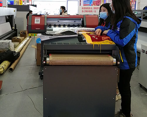 登騰廣告設(shè)備技術(shù)人員把機(jī)器安裝好后,對(duì)加工制作的整個(gè)過(guò)程進(jìn)行了測(cè)試,從鏤空燙畫(huà)打印到智能自動(dòng)抖粉再把圖案壓燙到衣服上,不管是過(guò)程的簡(jiǎn)單操作,還是轉(zhuǎn)印至衣服上的效果,肖總都稱(chēng)贊“很棒”!因此這整套煥圖燙畫(huà)印花機(jī)昨天下午順利通過(guò)驗(yàn)收。