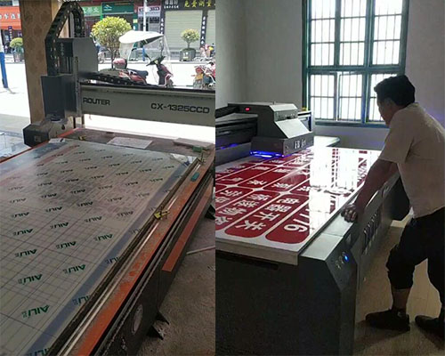 其中一臺就是黑邁2513uv平板打印機,這也是一款標牌打印機,可印刷金屬、木板、水晶等各種材料的標識標牌,然后用超星激光雕刻機雕刻切割出來,完美配合。黑邁uv打印機采用的理光G5噴頭,影像級別畫質(zhì),印刷速度快,是工業(yè)級別的大型打印機;超星激光雕刻機切割精度高、穩(wěn)定性強,直接原圖輸出,零出錯率,這兩者搭配,是標牌雕刻加工廠的標準設(shè)備配置。